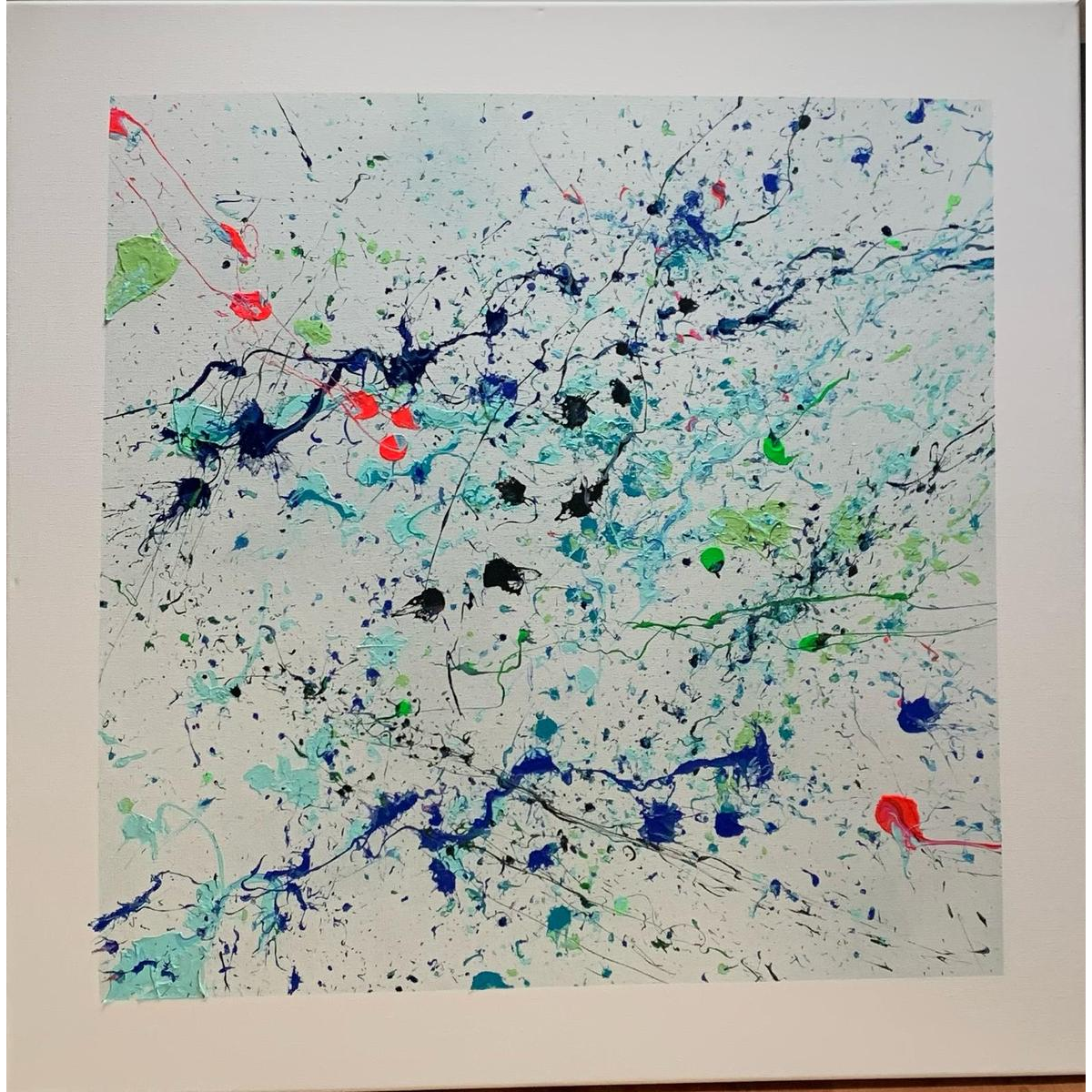 For the past year and a half, Judel has been developing a dripping technique that is both free and deliberate. Armed with his palette and paint pots, he creates large canvases (often a meter or more in size), framed with masking tape—a graphic signature that structures the energy of his splashes. His technique has become more refined over time: where he once drew direct lines, he now favors controlled, rich, and vibrant splashes.