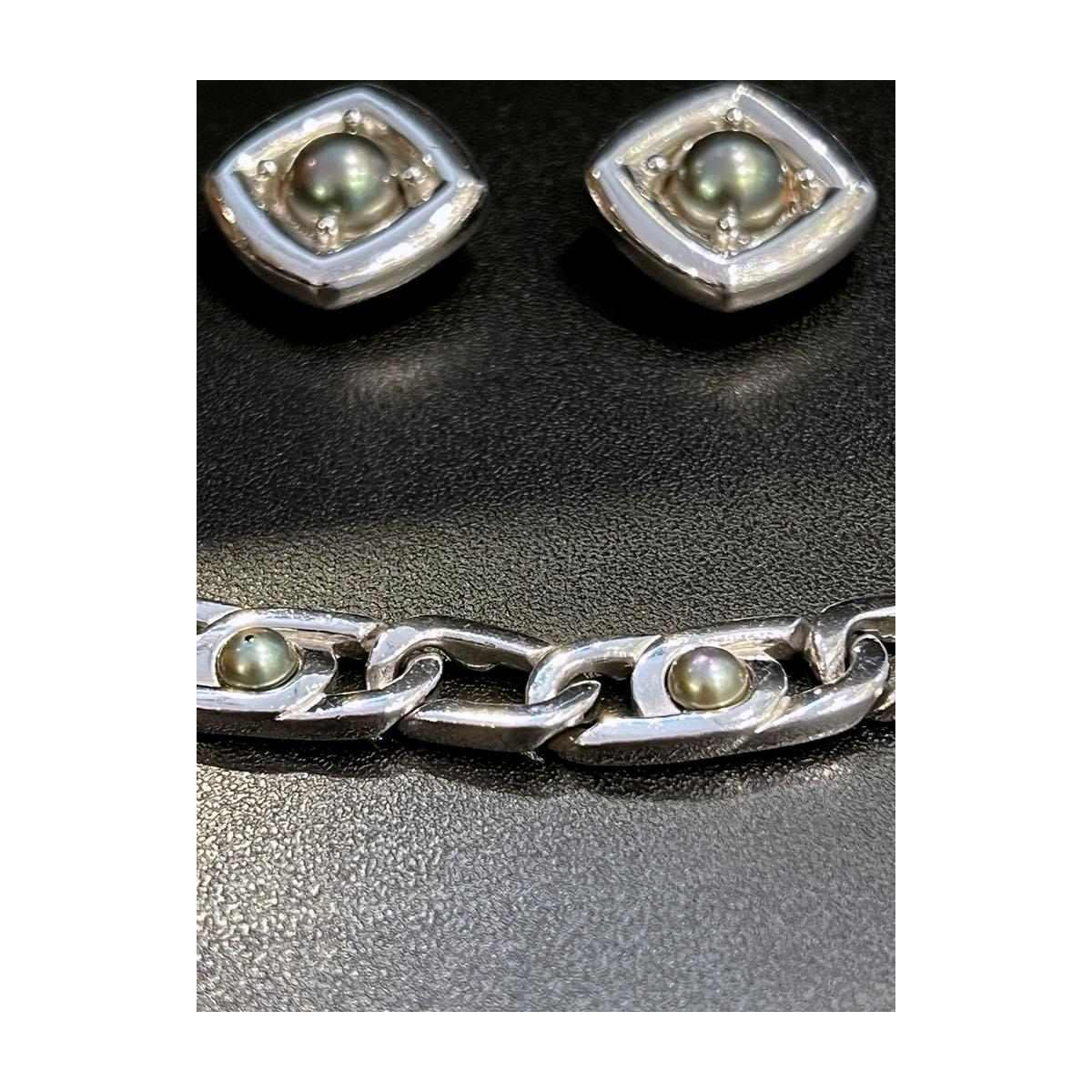 This form is only used to notify us of illegal content on product: Christian Dior, set necklace & earrings, silver-plated metal and grey pearls.