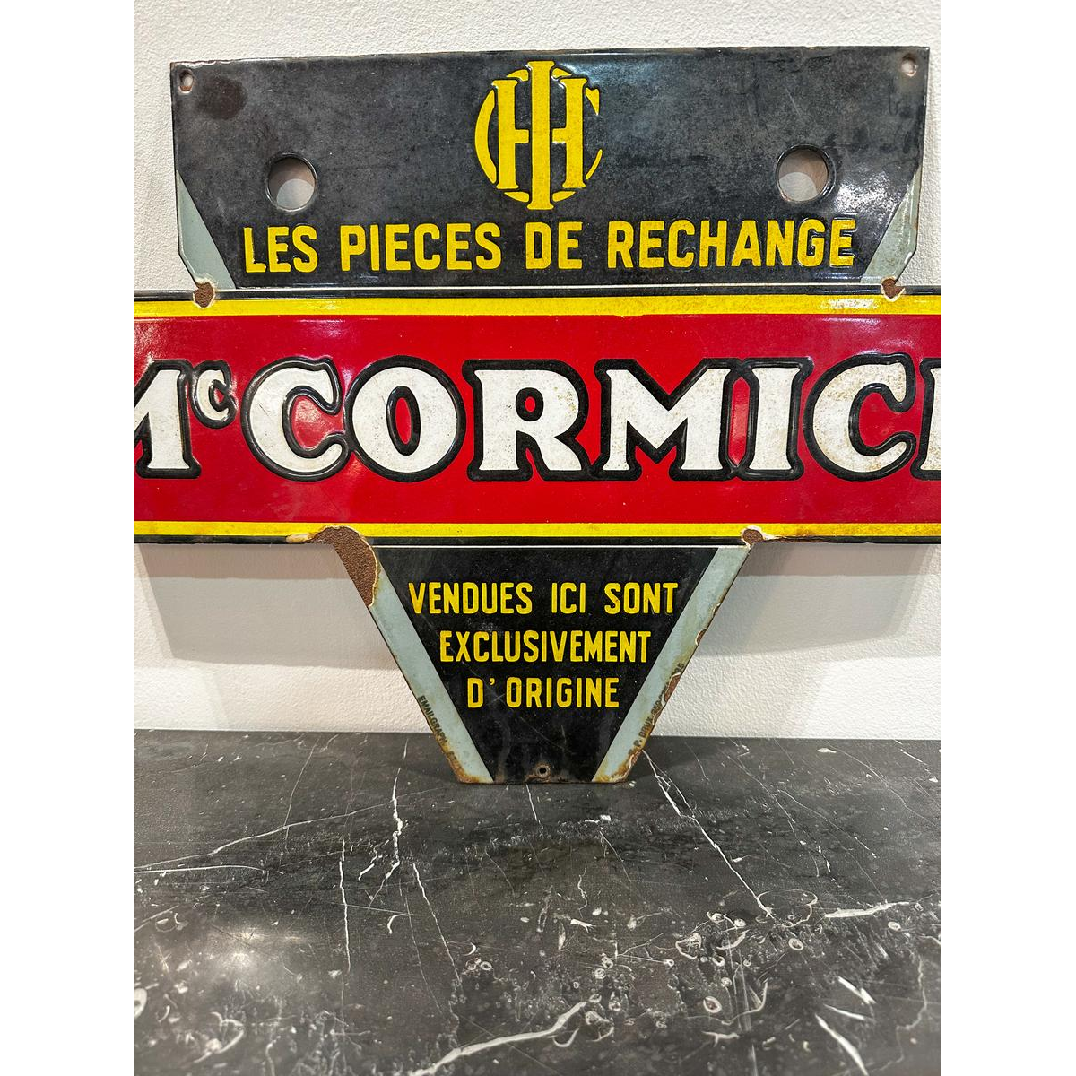 Enamel sign from the agricultural equipment manufacturer McCormick, dating from the 1950s. McCormick is an American manufacturer of agricultural equipment which, after being integrated into the International Harvester group, saw the brand abandoned in 1968.