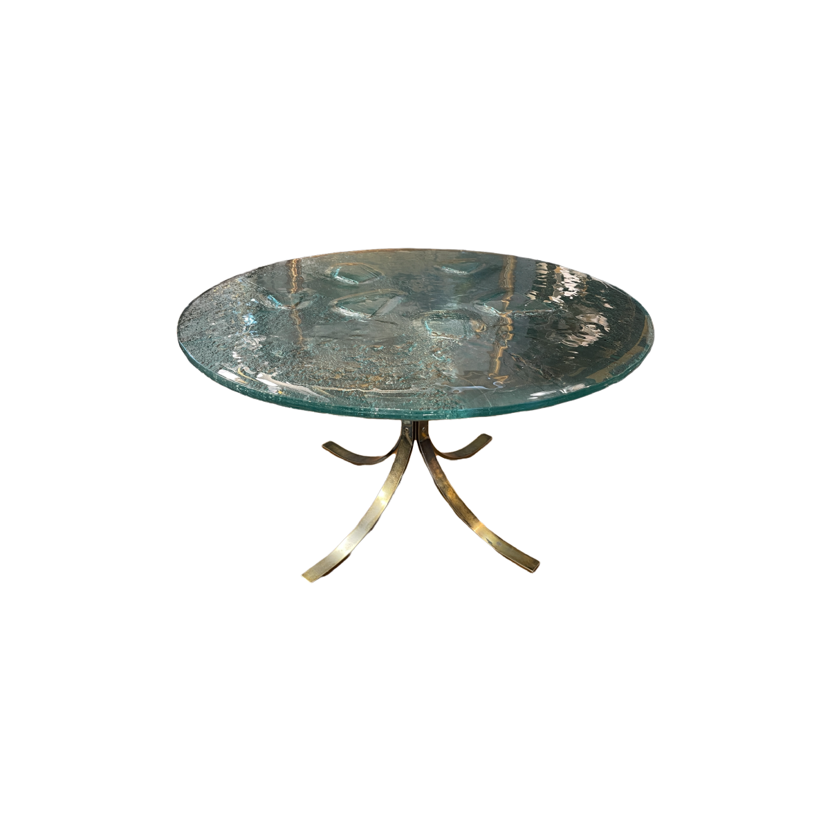 Round tables made of thick textured art glass in the "Ice Cube" style, very high quality work.