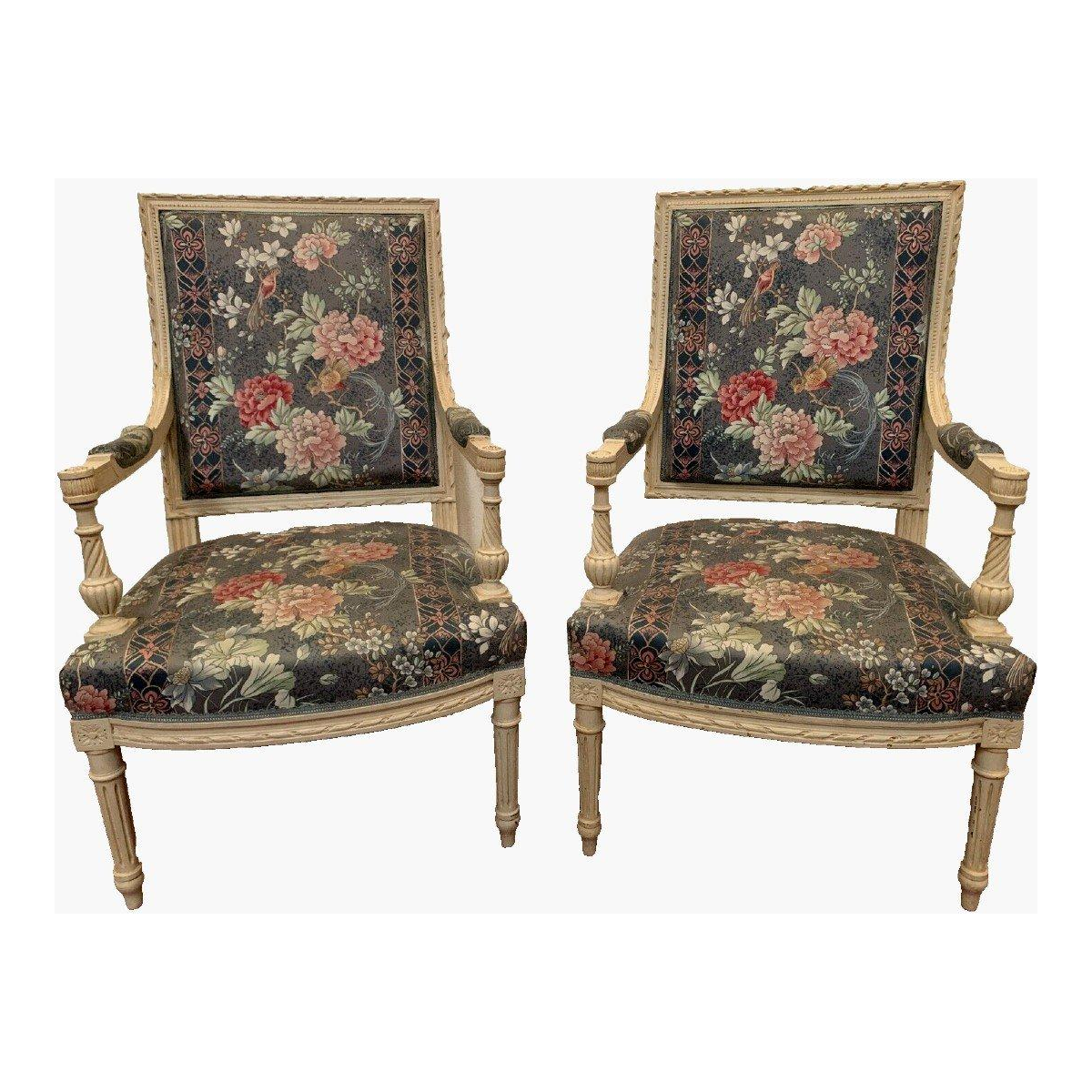 (https://www.artaplaza.com/en/bergere-chairs/8803-pair-of-louis-xvi-style-armchairs-white-lacquered-beech-and-tapestry-20th-century.html)