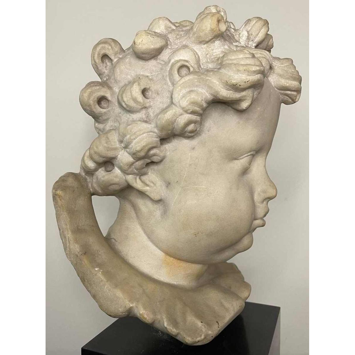 17th century Flemish school, head of an angel, marble sculpture, 19th century