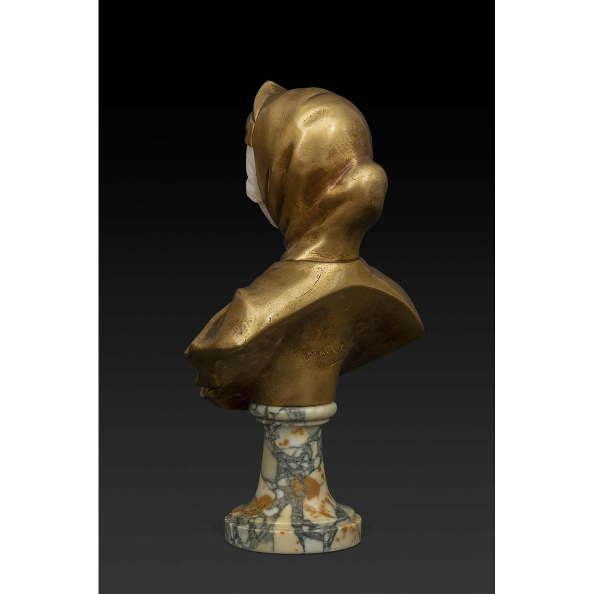 This form is only used to notify us of illegal content on product: Alabaster and Gilt Bronze Bust of "JOAN OF ARC" by G.VAN VARENBERGH (1873-1927):.