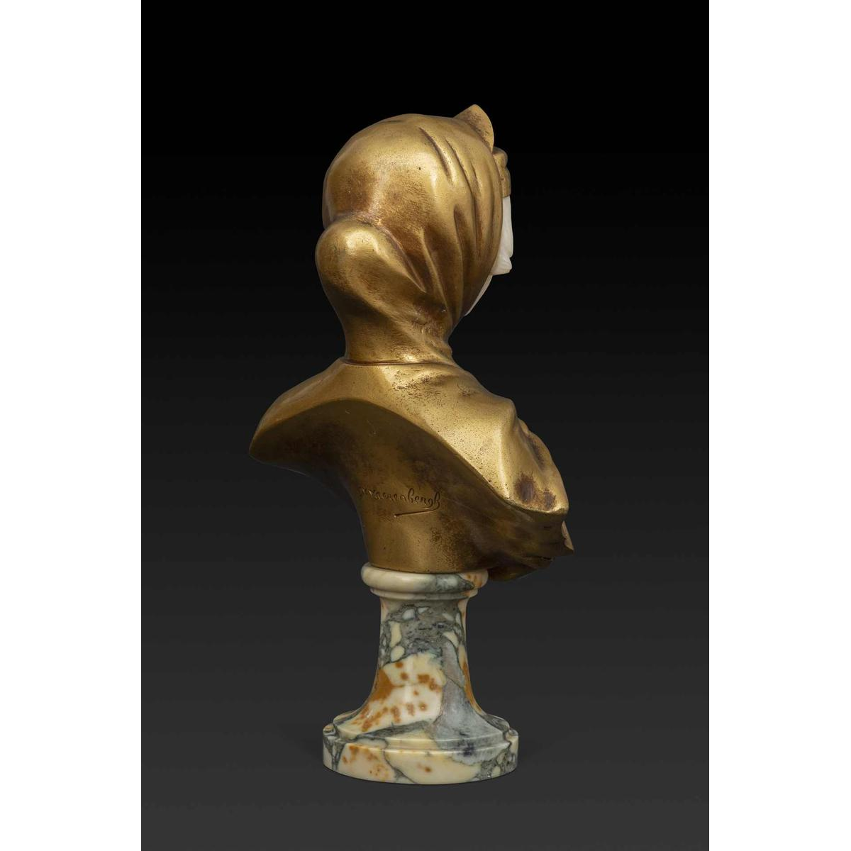 Alabaster and Gilt Bronze Bust of "JOAN OF ARC" by G.VAN VARENBERGH (1873-1927):