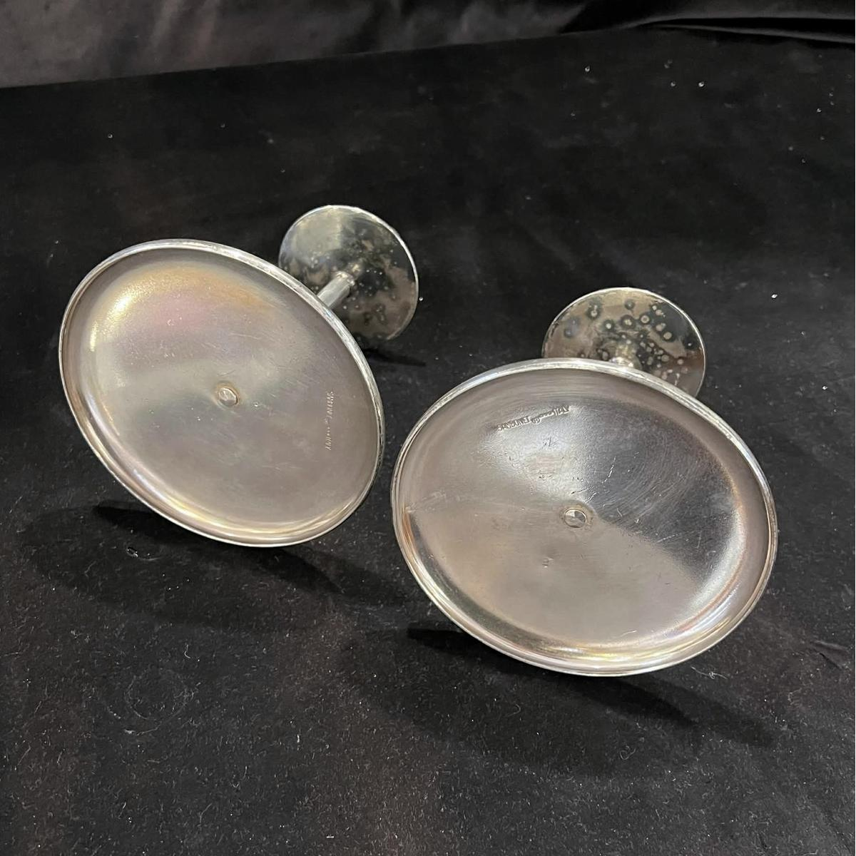 SAMBONET, pair of silver-plated metal candlesticks, Italy ca 1960