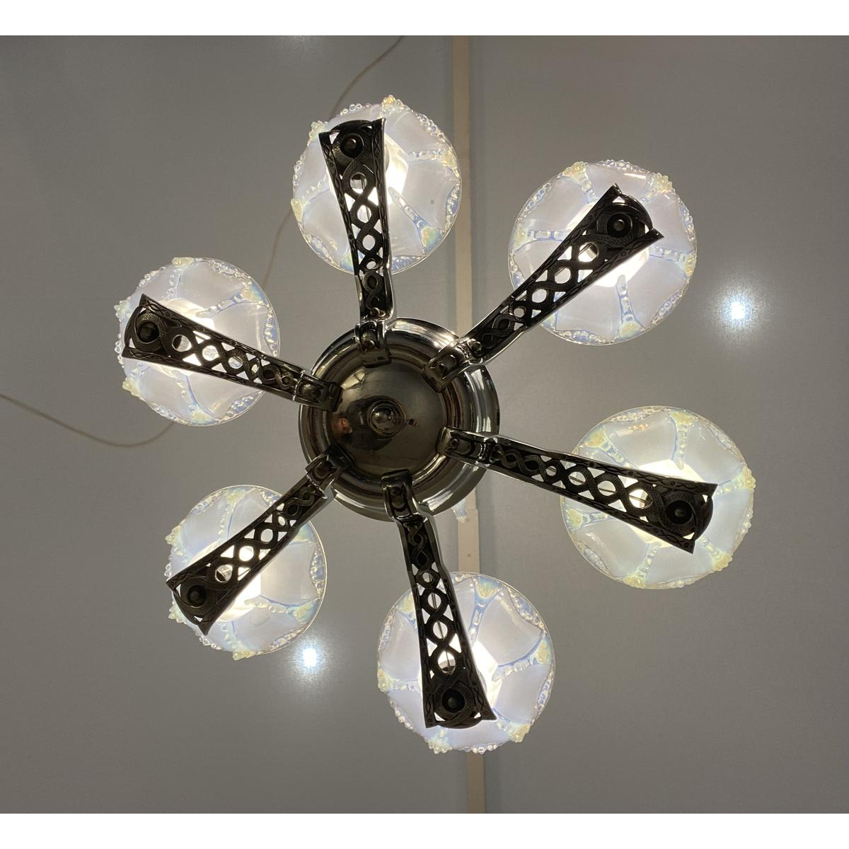Magnificent 6-light chandelier in silver-plated metal. The glass globes are transparent and matte, opalescent, with ice decoration and in perfect condition.