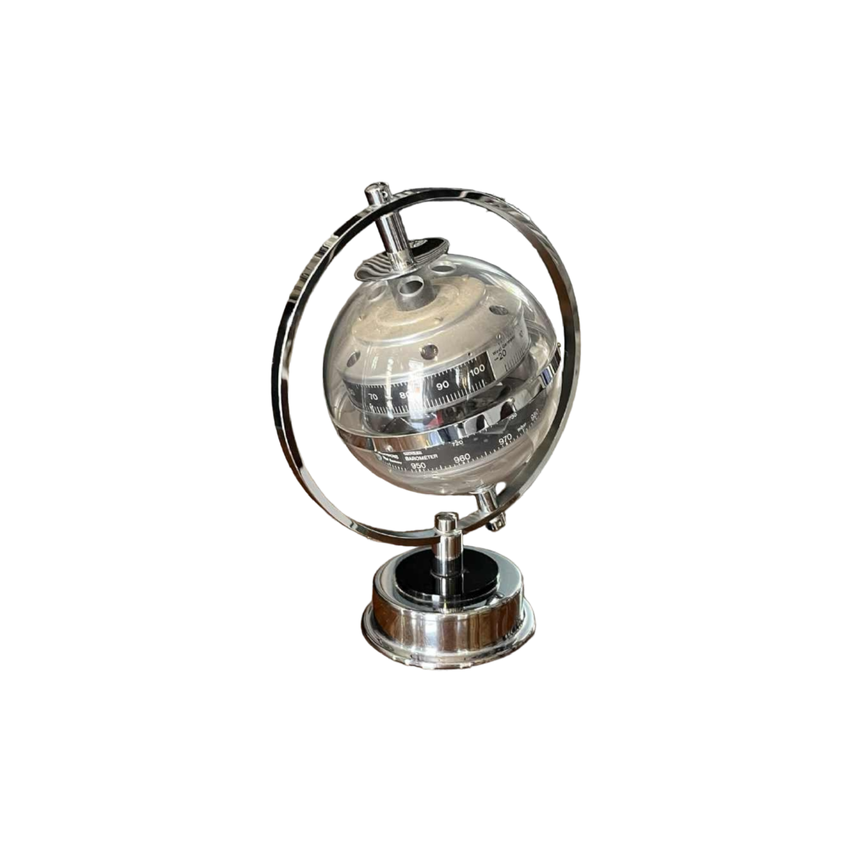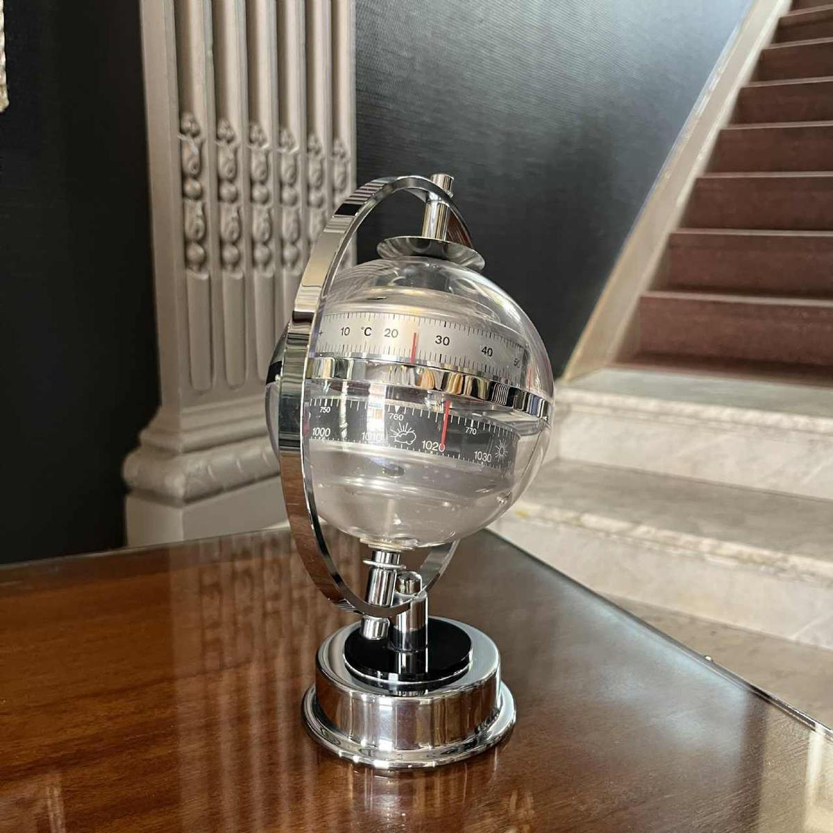 Following the space epic and the launch into space of the Sputnik 1 satellite in 1957, the German company Huger created two models of weather station: a small globe model with antennae and an exclusive larger top-of-the-range model (the one we are offering) with the Saturn ring. They were produced in chrome or brass...