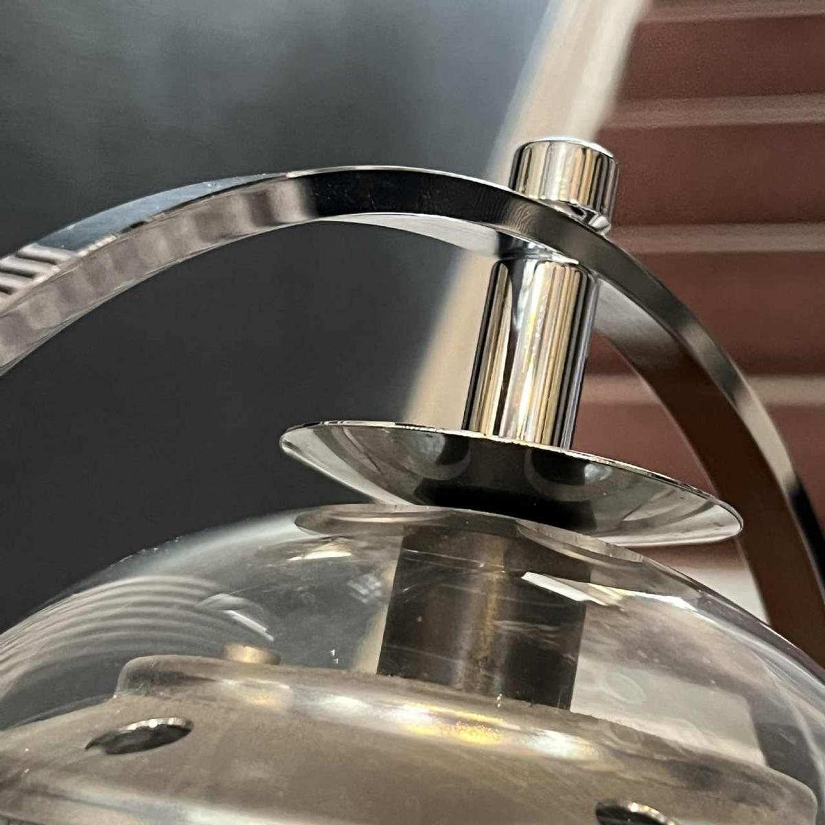 Chrome-plated steel structure, polycarbonate sputnik sphere rotating inside the "ring of Saturn", meticulously finished to a high quality.