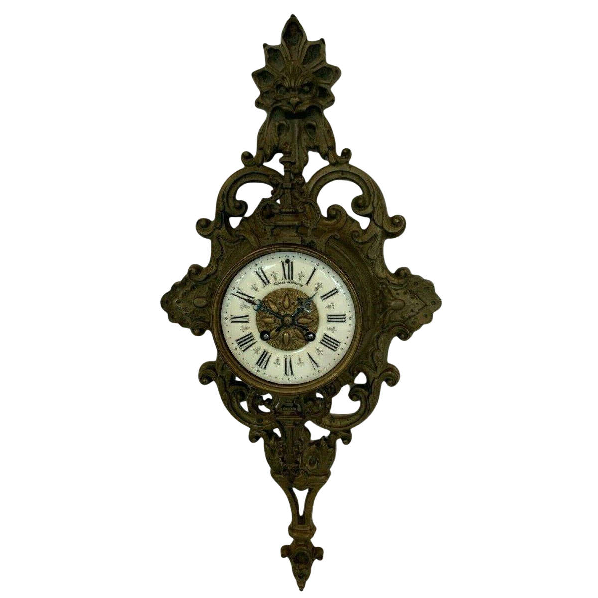 (https://www.artaplaza.com/en/clocks-barometers/8502-gailliau-neut-wall-mounted-cartel-clock-chased-bronze-with-mascaron-decoration-19th-century.html)
