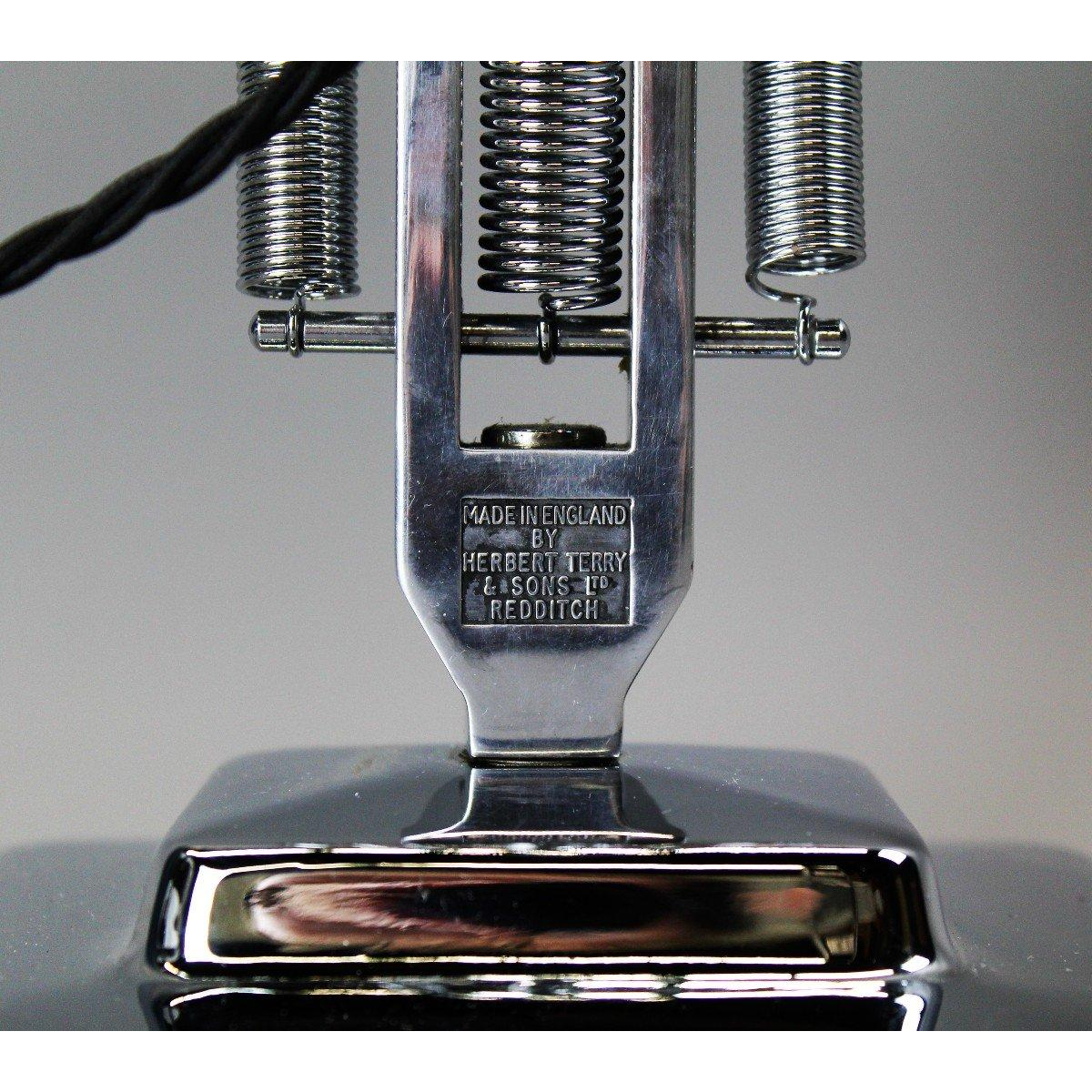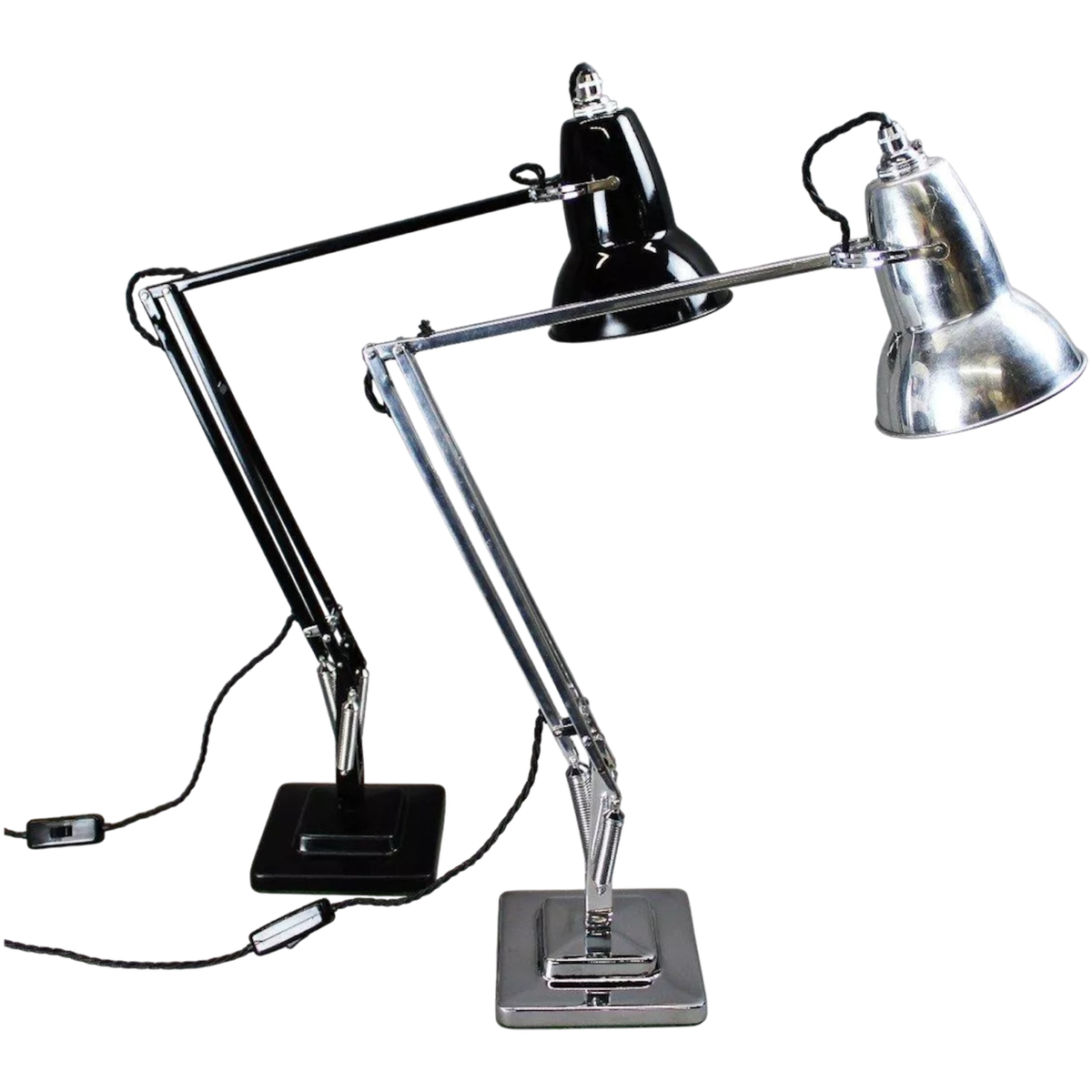 Original Anglepoise Desk Lamp - Model 1227 - England - Circa 1940. The Anglepoise lamp is a balanced arm lamp designed in 1932 by the British designer George Carwardine. Manufactured and published by Herbert Terry & Sons in 1935. Fully restored to perfect working order. Polished aluminum and re-chromed parts. Also available in restored black paint. Rewired and grounded. We restore these lamps in our own workshops in London and Germany to a very high standard. All lights are rewired with new, old-style textile cable. For safety reasons, we only use new bulb holders with a ground screw. We only use spare parts from old, unusable lamps. Worldwide shipping - Customs and import duties are the responsibility of the buyer.