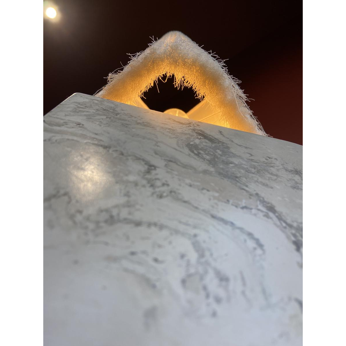 This handcrafted lamp is a unique creation made in Belgium. It stands out for the quality of its materials (marble stucco) and its contemporary style. The lampshade, made from Franches fabric by Houles, adds texture, refinement, and a warm, diffused light. The lamp base provides elegant and stable structure. The lamp has recently been wired and is ready to be installed and used immediately. Together, they form a striking decorative object, ideal for enhancing a contemporary, classic, or eclectic interior with an authentic handcrafted touch.