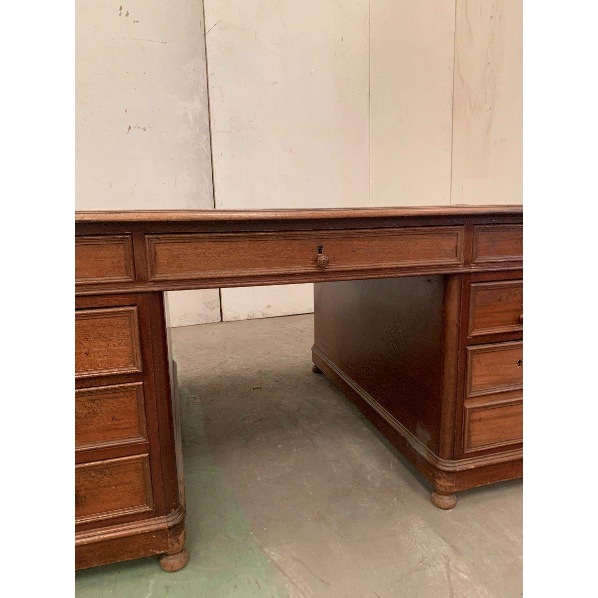 Double-sided flat desk with side pull-out drawers in walnut – 20th century