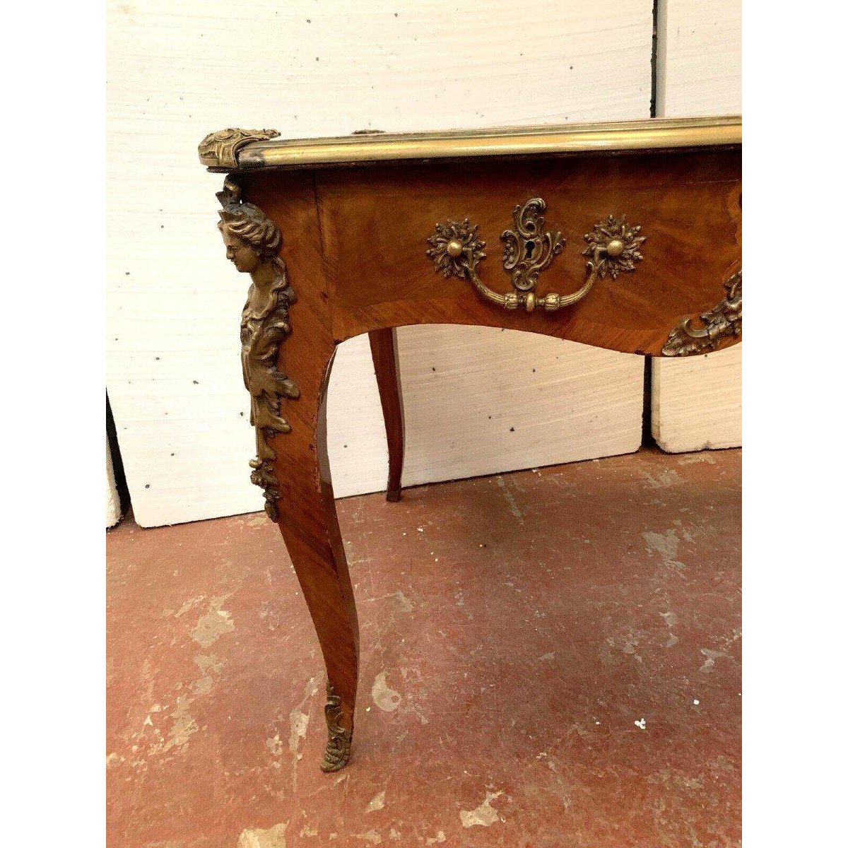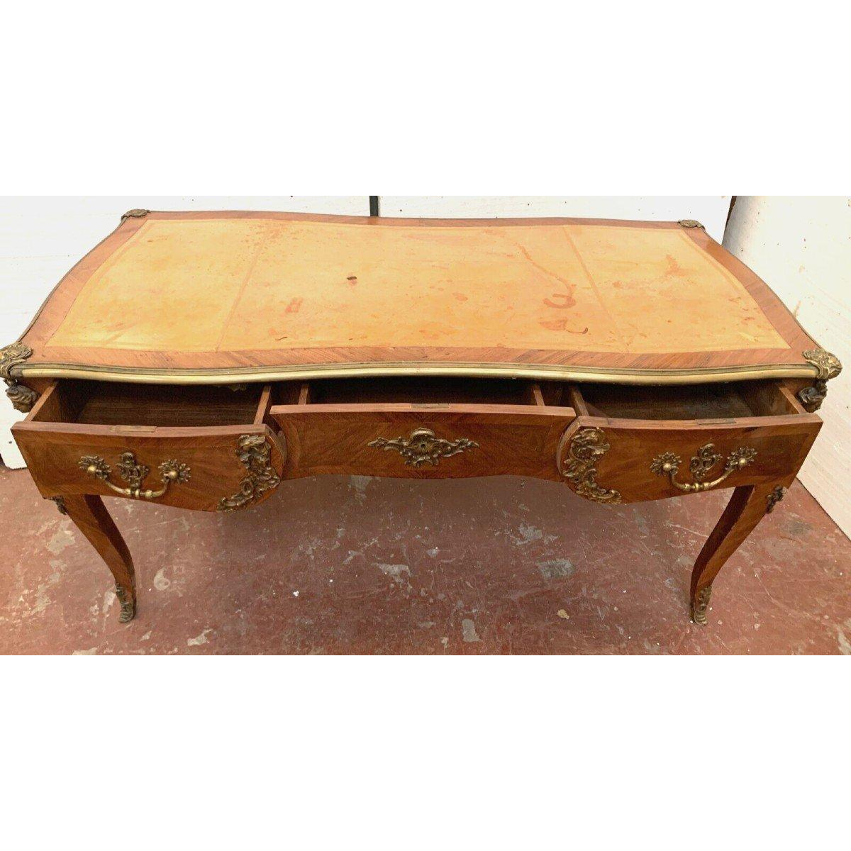 Louis XV style ceremonial desk, tan leather top – 19th century