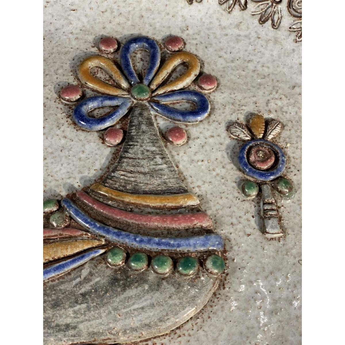 DOUR's artistic ceramic workshop was founded in 1951 and operated by artists such as the painter Roger Somville and his wife Simone Tits, Monique Cornil, Therèse and Marie-Henriette Bataille, Claire Lambert, Paul Timper, Monique Cornil, Louis Van De Spiegel. They will mainly produce sculptures, vases, murals, and dishes with naive animal and plant decorations in the spirit and artistic movement of the time. Comparable to Vallauris in France, we will note fantastic birds and fish, characters and other flowers, in delicately raw and colorful ceramic.