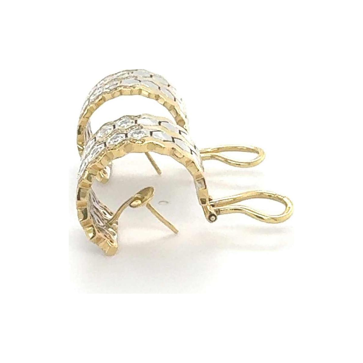 Diamonds : Set with 1.78 carats. Material: Two-tone, using two shades of gold. Total weight of gold: 23.70 grams, indicating a medium to large size. Style: A chic and sophisticated design, perfect for special occasions or to add a touch of luxury to everyday life. These earrings reflect the artisanal excellence of J.Katz Jewellers and are ideal for lovers of high-quality jewellery.