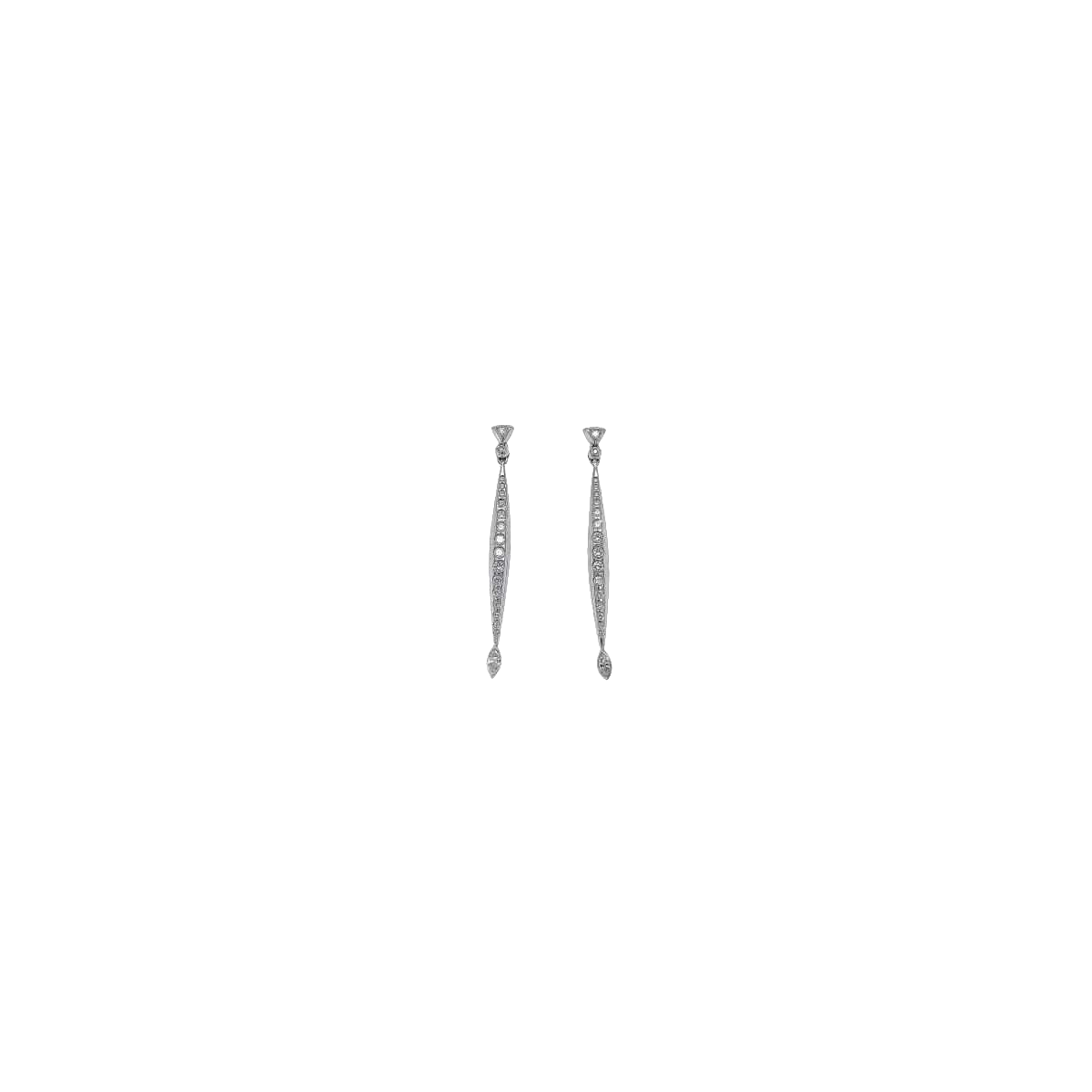 White gold earrings with diamonds offer a classic, elegant look. The white gold enhances the brilliance of the diamonds, creating a striking contrast that draws attention to the precious stones.