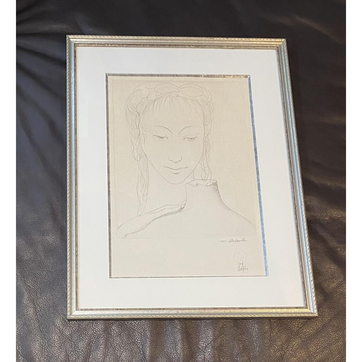 A very beautiful lithograph by Marcel Delmotte depicting a woman's face next to a statue. The drawing is classical with a surrealist touch, perhaps inspired by the world of De Chirico, whom Delmotte greatly admired. It bears M.Delmotte 's pencil signature and a blind stamp with the printer's signature.