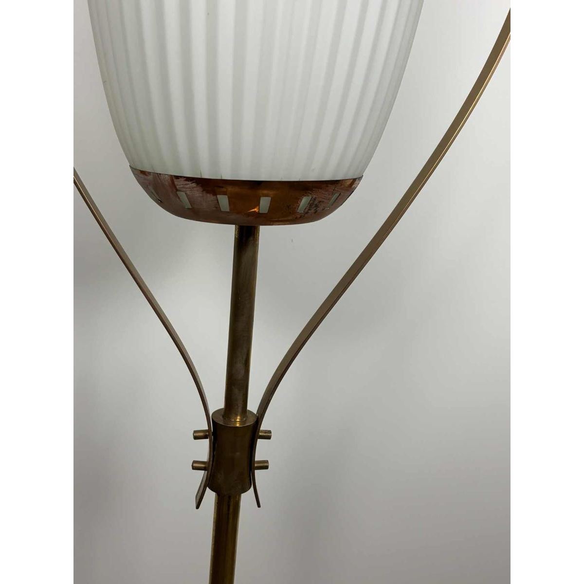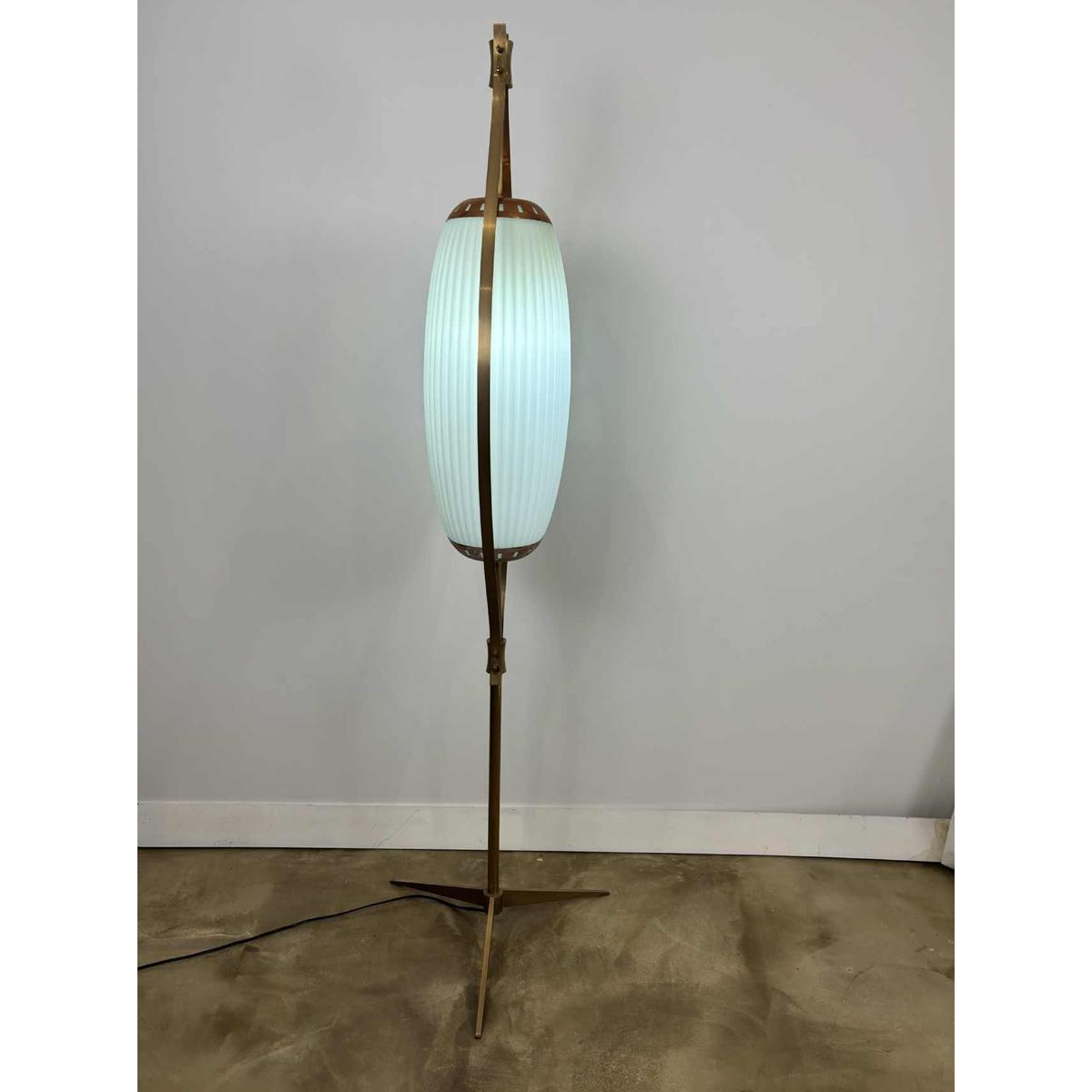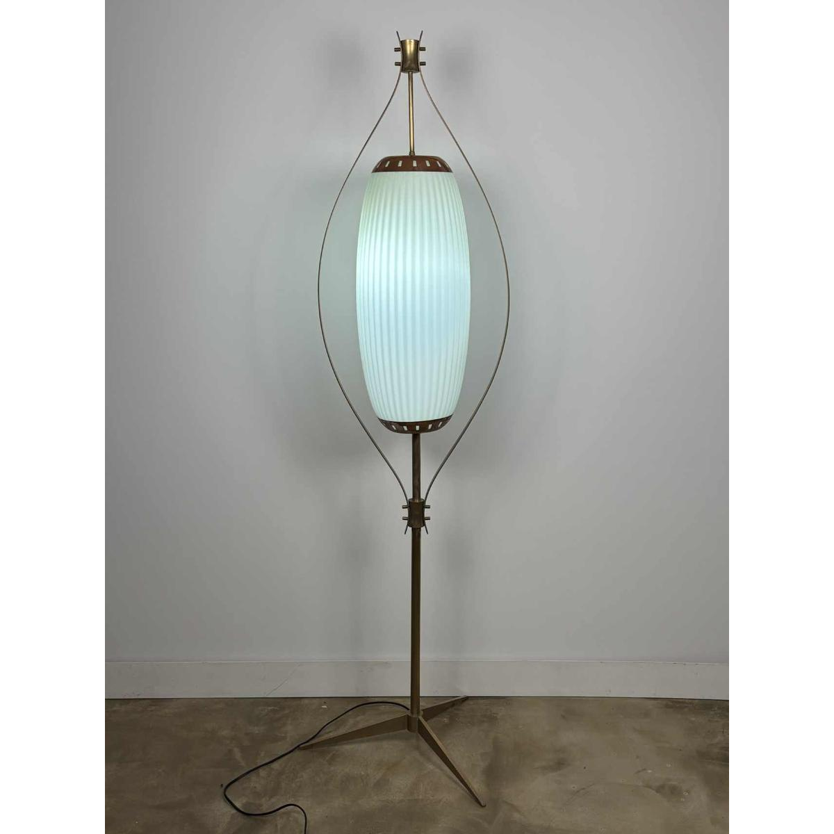 This form is only used to notify us of illegal content on product: Mid-century floor lamp, opaline Murano glass & brass, style of Angelo Lelii for Arredoluce, Italy ca 1950.
