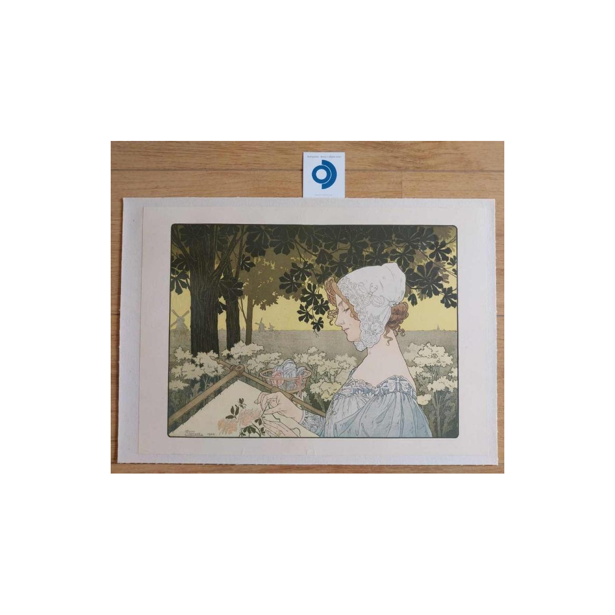 (https://www.artaplaza.com/en/genre-scene/4247-henri-privat-livemont-the-embroiderer-decorative-print-1904.html)
