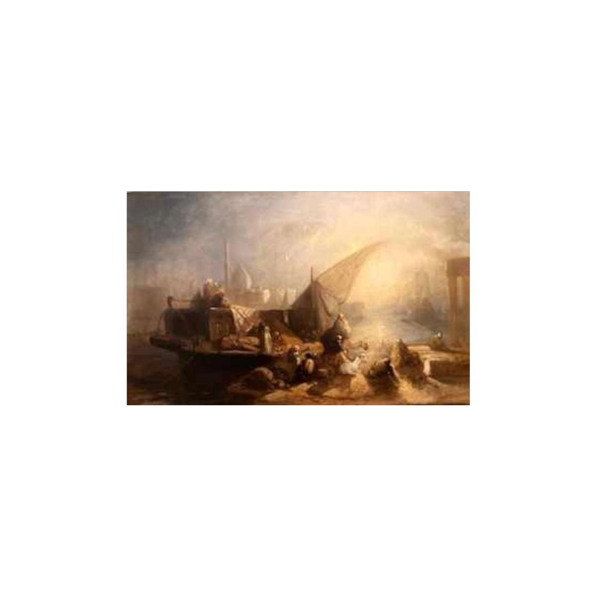 A scene of haggling as he leaves a boat moored in a port, presumably in Egypt, in connection with his trip down the Nile with Florent Mols in 1838.