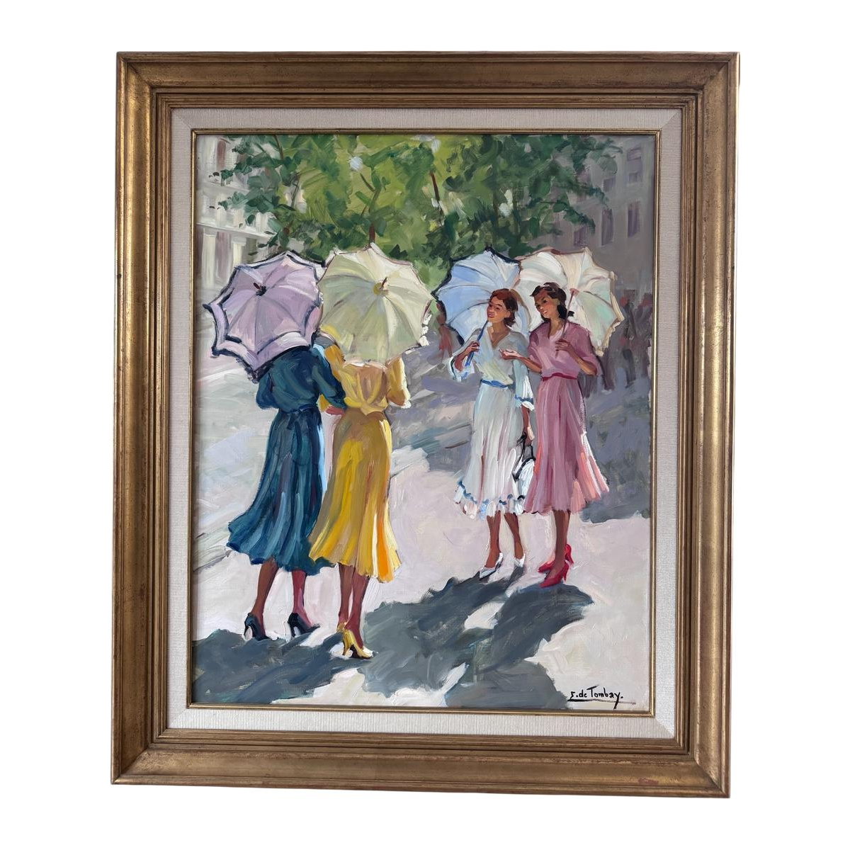 Painter. Trained at the Liège Academy under Mambour and Ochs and in Barazzutti's studio in Rome. She paints elegant figures, youth, sunshine, holidays, and romantic compositions with girls and young women. She also finds inspiration in the South of France and Spain. Sunny, Impressionist palette. In the press: With Ellen de Tombay, the art of painting returns to its essence; her art is a true source of dreams and joy. Member of the Belgian Women Artists' Federation.
