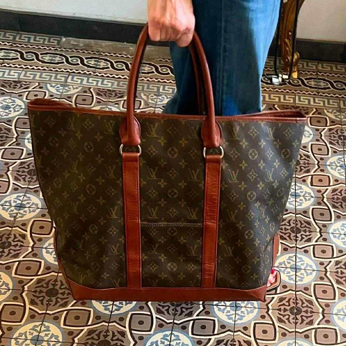 LOUIS VUITTON - large GM weekend tote bag in monogram canvas and natural leather.