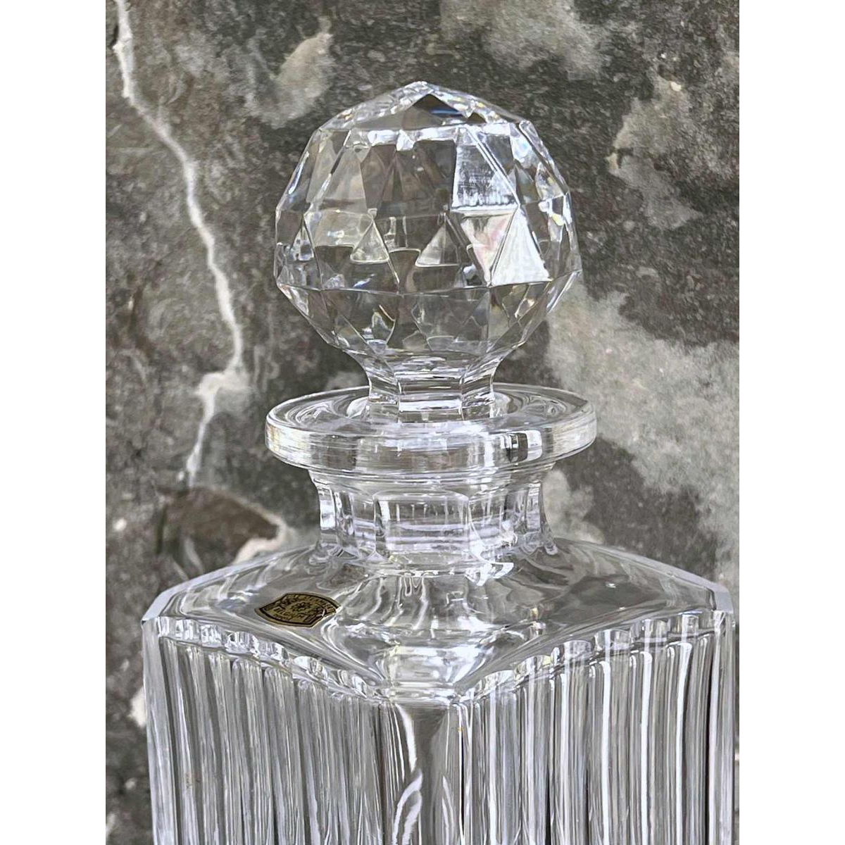 Val Saint Lambert whisky decanter - diamond-cut clear crystal with flat ribs.