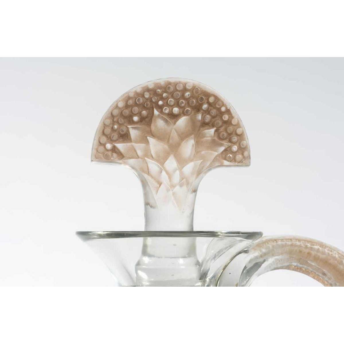 1923 René Lalique "Satyre" Decanter in Sepia Patinated White Glass for Cusenier