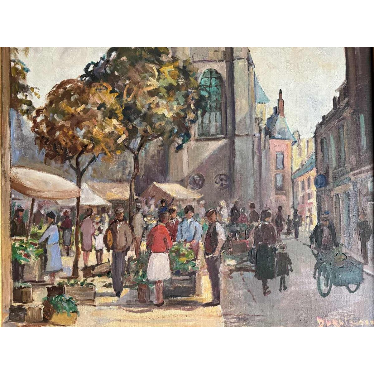 Pol Duruisseau « Namur, the market Place Vegetable market» painting oil on canvas