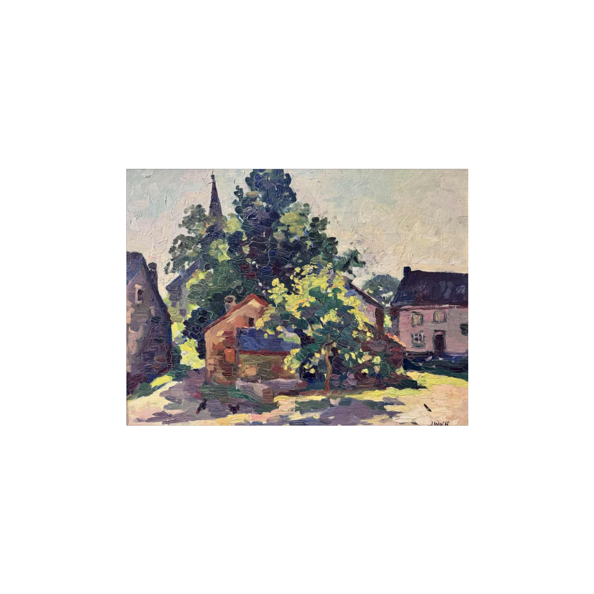 José WOLFF ‘Village near Liège’ impressionist painting oil on panel, 20th c