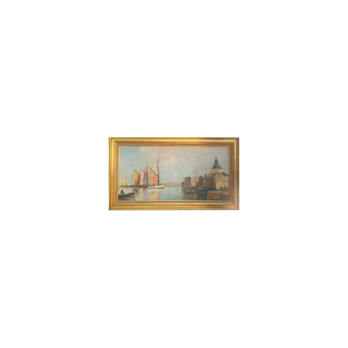 Oil on canvas painting by Louis Bissinger/Berard Art Nouveau ville - Concarneau Louis BISSINGER was born in Lyon on April 24, 1899, a French artist and painter. Before turning to painting, he studied at the Lyon Conservatory of Music. He painted landscapes and still lifes in the Lyon region. He is also known as “Régis Bérard” or “L. Berard”, the name with which he signs his paintings. Unfortunately, he was arrested in 1943 as a member of the Resistance. He produced a large number of watercolor drawings, mainly showing views of the camp and its hellish conditions. He remained there until May 1945. On his return, he exhibited his work on the Buchenwald camp. In 1954, he was awarded the 1st Prix des Amis des Arts de Grenoble. Five years later, he was awarded the military medal by decree on December 29, 1959. Width: without frame 98.5 cm, with frame 116.5 cm Height: without frame 48.5 cm, with frame 65.5 cm Louis BISSINGER died in 1978 in Rillieux-la-Pape in the Rhône region. He left behind a large body of work.