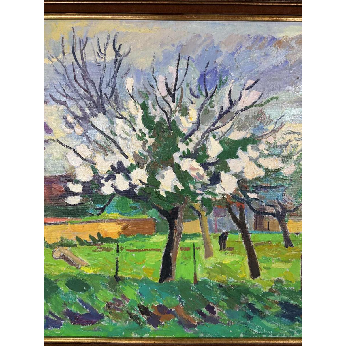 Franck Innocent Spring in Heudebouville post-impressionist painting oil on canvas, 1978