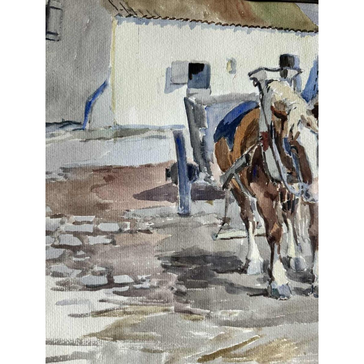 This form is only used to notify us of illegal content on product: Victor FERMEUSE ‘Draught horses and pig in the yard at Heyst’ watercolour on paper, 1935.