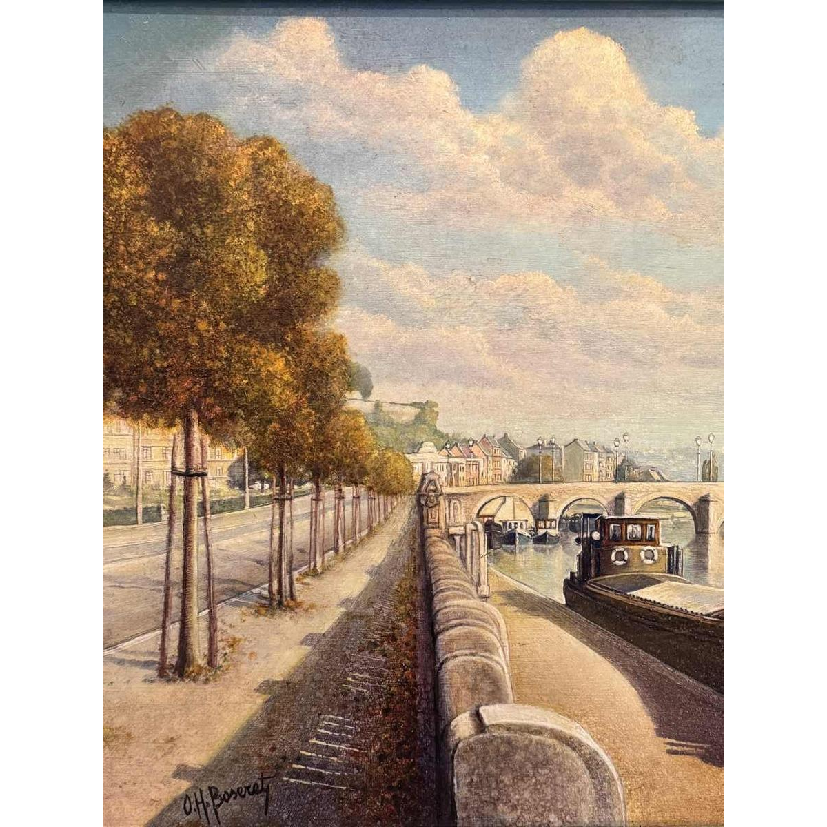 This form is only used to notify us of illegal content on product: Olivier Henri BOSERET "Namur, the banks of the Meuse and the Jambes bridge" painting oil on board.