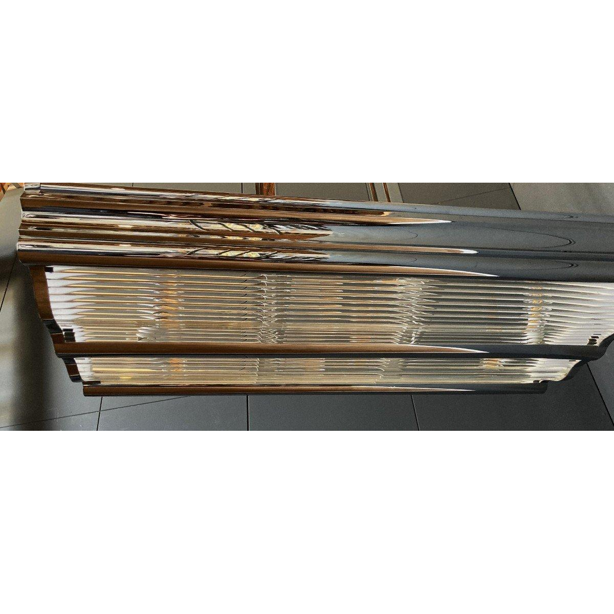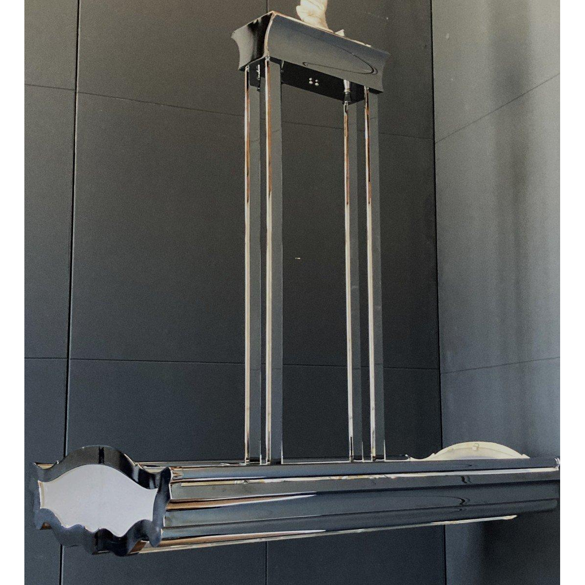Large Art Deco chandelier in the style of Henri Petitot, chromed bronze and glass, France circa 1930s-1940s.