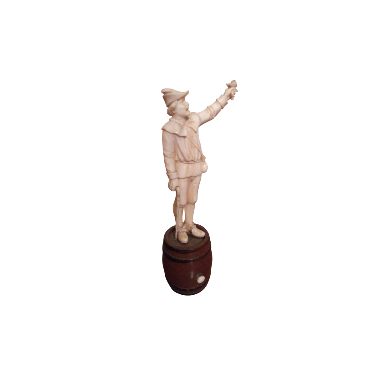 "Man with a rose" ivory figure sculpture, wooden barrel base, Nuremberg 18th c