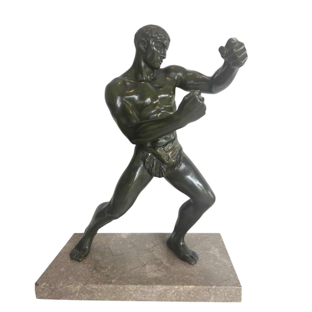 "The Boxer" bronze sculpture with brown/green patina – 20th century