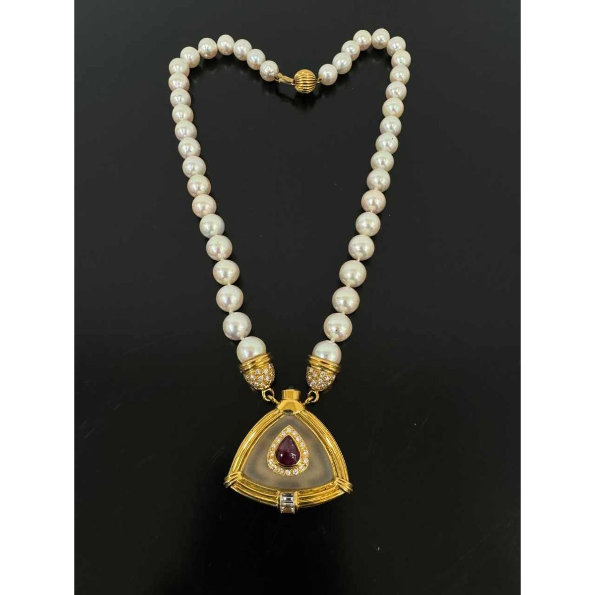 This form is only used to notify us of illegal content on product: Pearl, gold, ruby & rock crystal necklace.