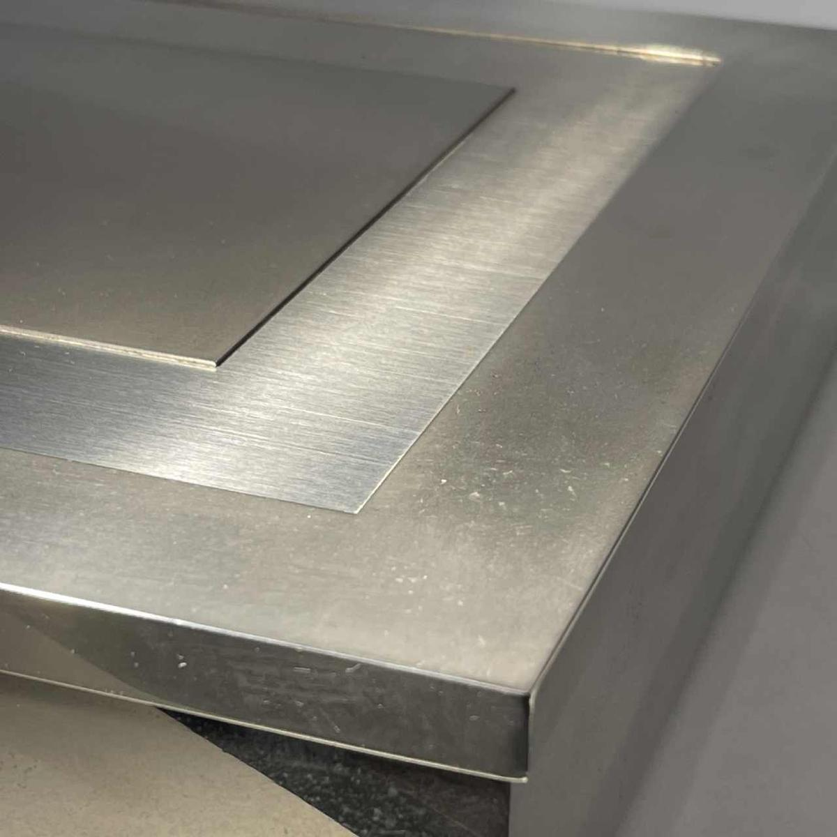 Giacomo Sinopoli for Liwan's, modernist storage/jewelry box, steel & blue glass, 1970s