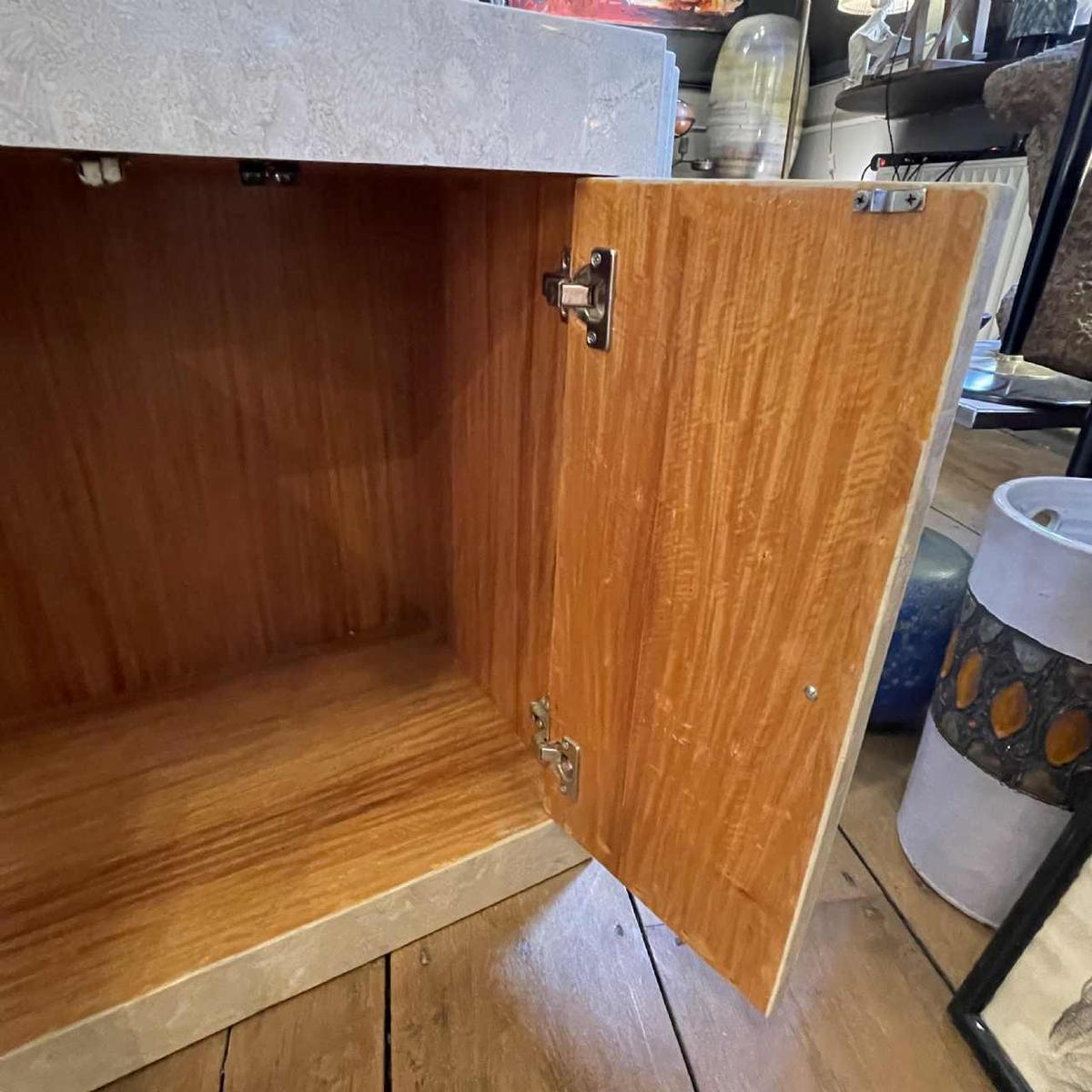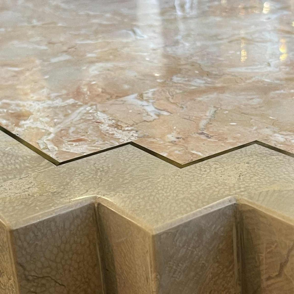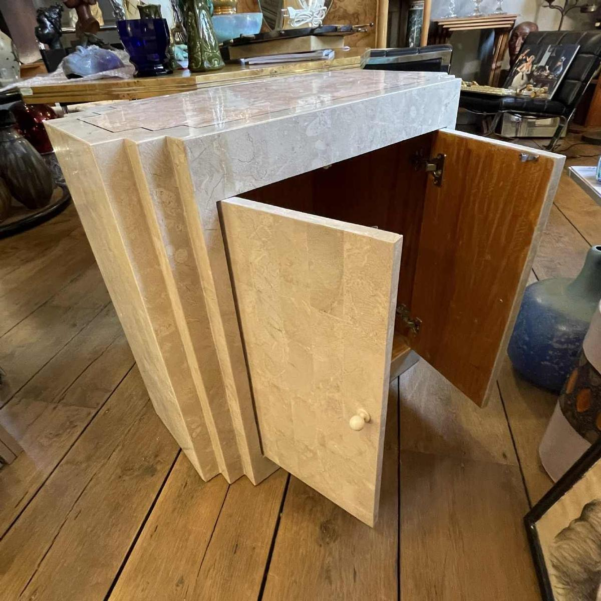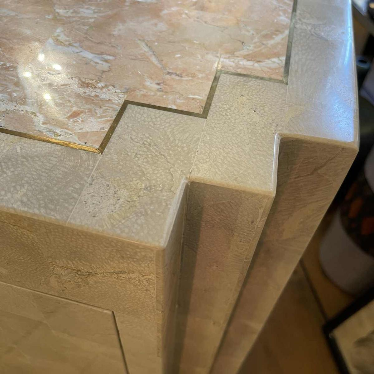 This form is only used to notify us of illegal content on product: Jean-Claude Mahey, travertine & brass fillet Design furniture dresser, ca 1960.