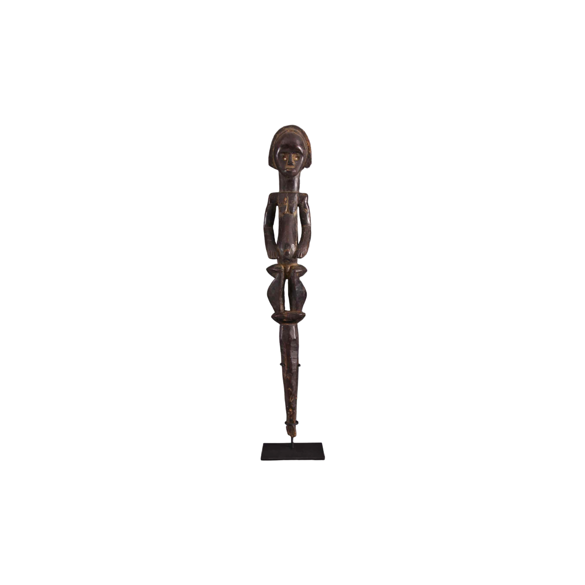This African sculpture illustrates Ntumu-style statuary from the regions between Gabon, Cameroon and Equatorial Guinea. With its glossy black patina and eroded areas, it bears witness to the distinctive artistic heritage of this region.