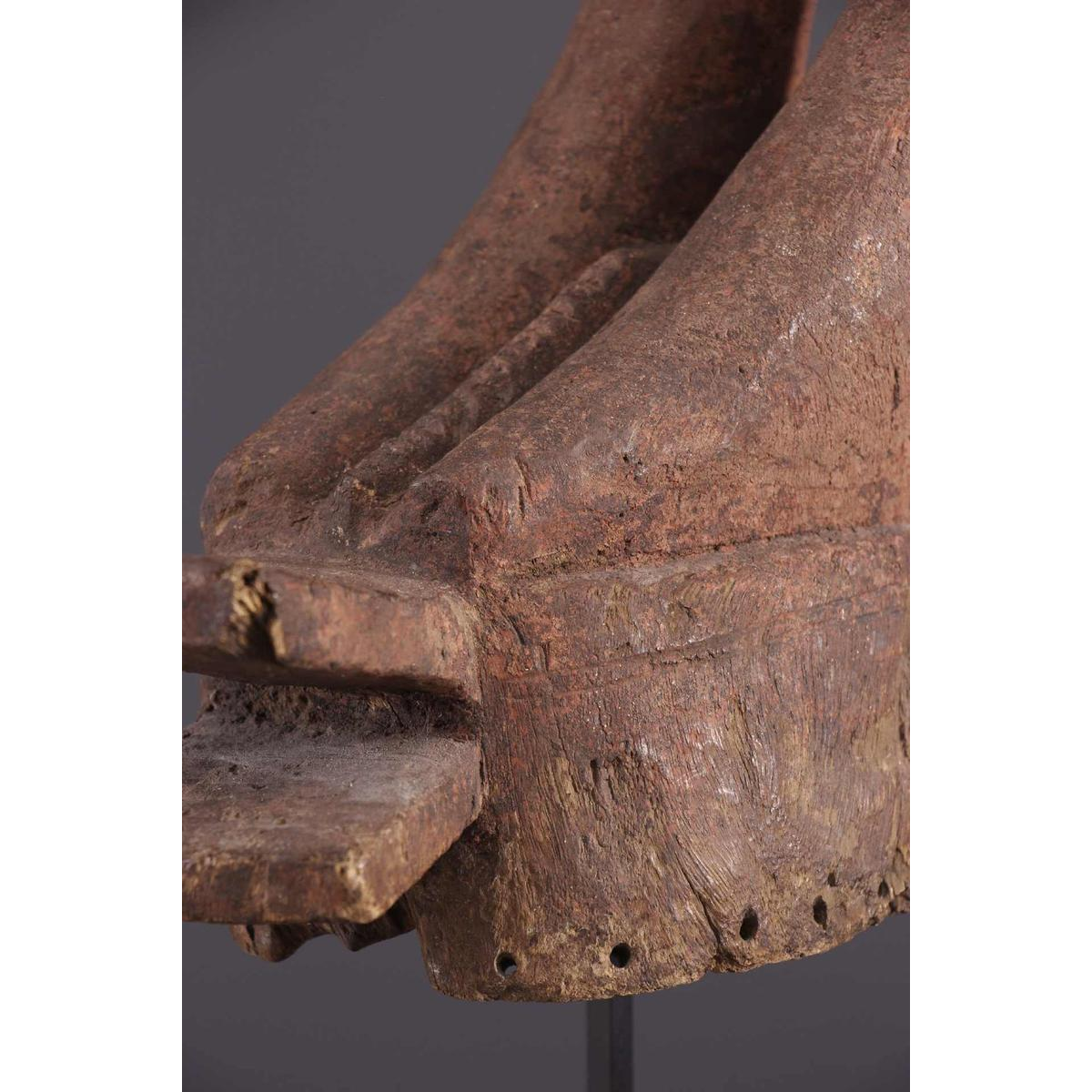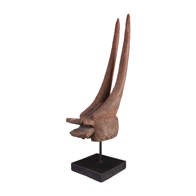 The sober masks are an integral part of Mama mangam rituals, also known as Kantana. These masks are used by a male association within the ethnic group to ensure social stability and stimulate agricultural production. They are particularly associated with the northern regions of the Benoué, where several ethnic groups make masks in a very refined style, generally worn horizontally.