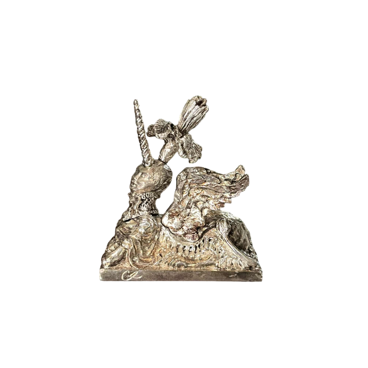 (https://www.artaplaza.com/en/other-art-objects/6694-christian-lacroix-for-christofle-unicorn-sphynx-sculpture-paper-press-1998.html)