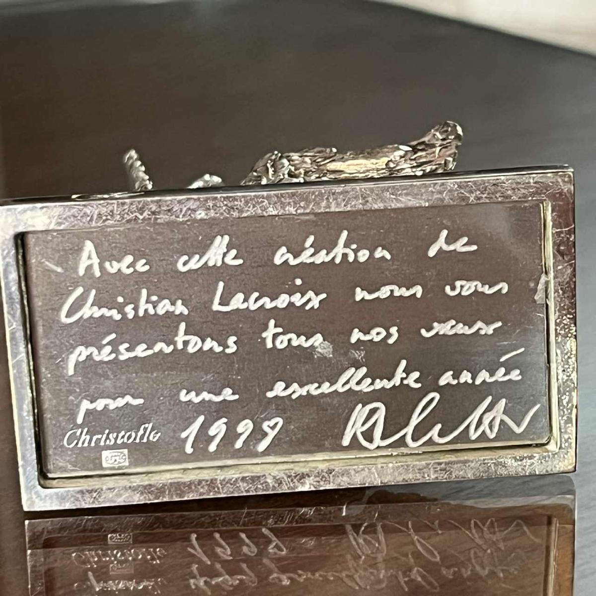 With the inscription text under the base "With this creation of Christian Lacroix we present you all our wishes for an excellent year 1998".