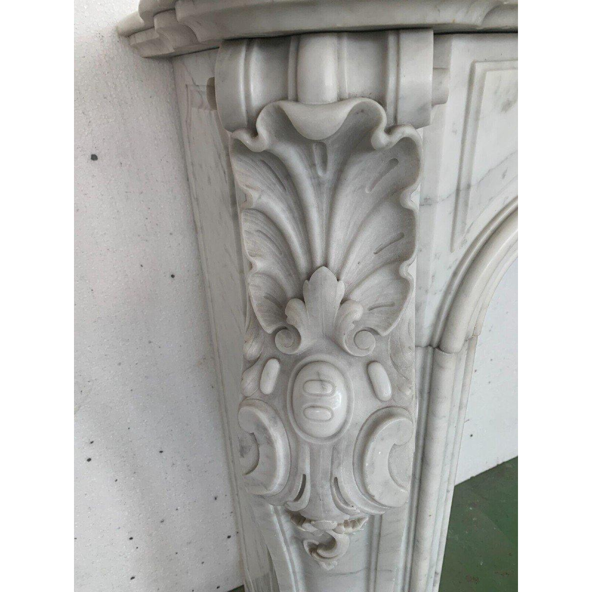 Louis XV style fireplace in white Carrara marble, 19th century