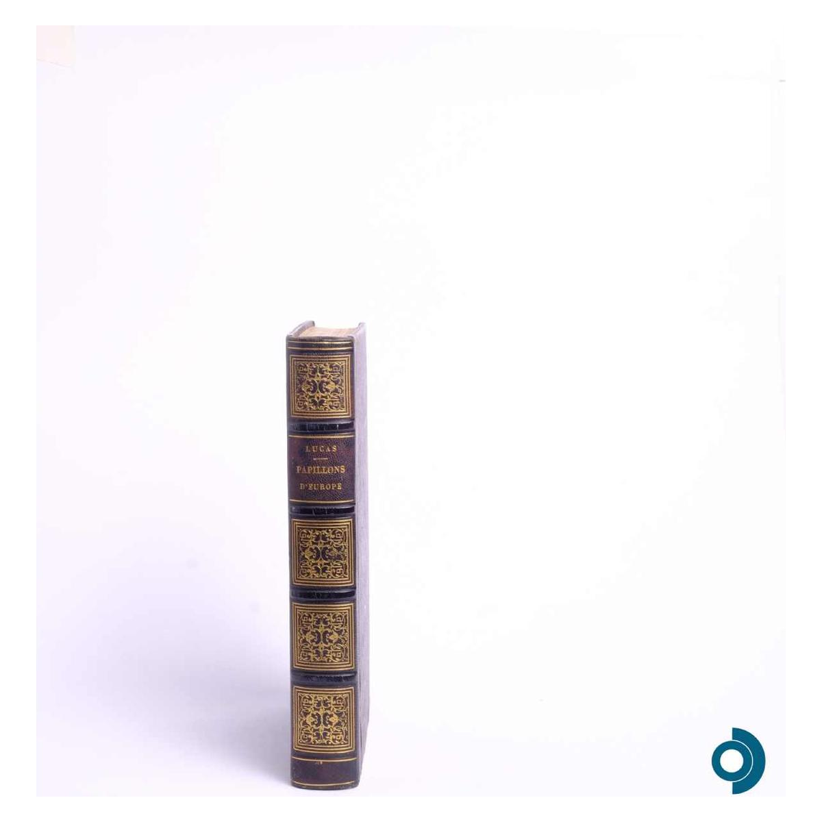 LUCAS P.H., Histoire des lépidoptères d'Europe, Paris, L. de Bure, 1845. Second edition of the Histoire naturelle des lépidoptères by P.-H. Lucas, augmented by a treatise on butterfly hunting. 400 figures painted after nature by A. Noel, steel-engraved by Pauquet and finely enhanced by hand. Pierre-Hippolyte LUCAS (1815-1899), French entomologist, assistant at the Muséum national d'histoire naturelle. He was a member of the scientific commission exploring Algeria from 1839 to 1842. Good condition, (first 6 leaves stained/browned, rubbing/wear on lower part), 216 pages, 80 color plates with nearly 400 specimens, half brown chagrin, 4-spine spine, gilt author/title, gilt edges, 15.5 x 23.5 cm. Photos and further information on request.