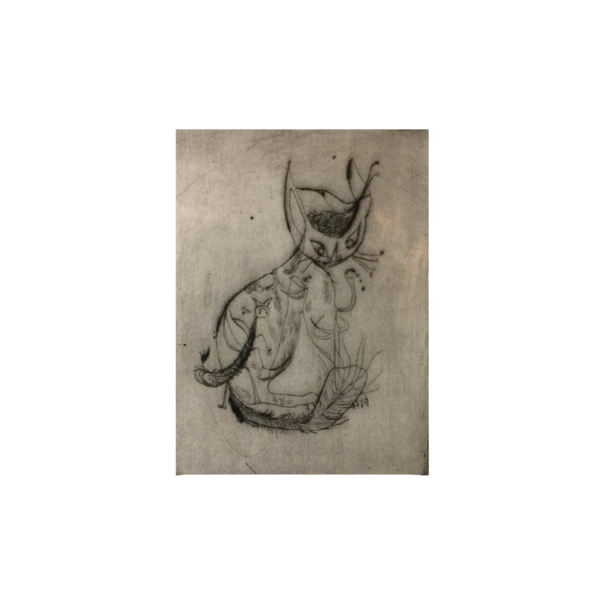 Anne Body " The Cat's Parasite " 1961, surrealist, expressionist, abstract engraving on paper, numbered 1/9
