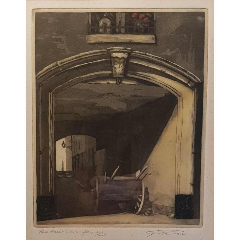 Gielis Pierre ‘ Rue Héris ’ colour engraving, numbered and signed