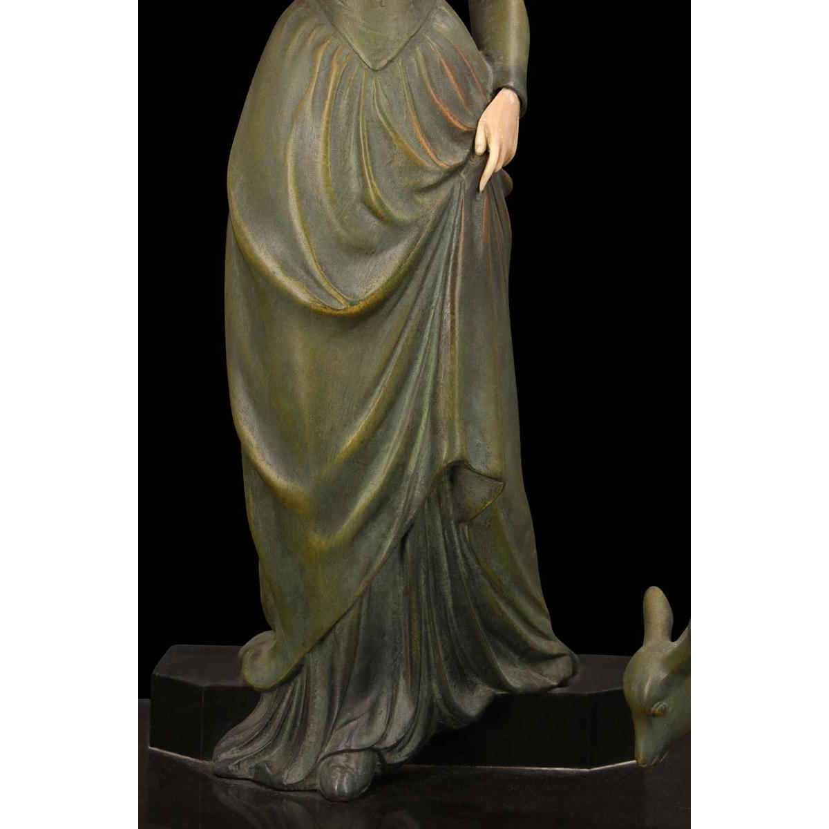 MENEVILLE (attributed to) "The deer lady" Art Deco sculpture, green patina metal, early 20th c