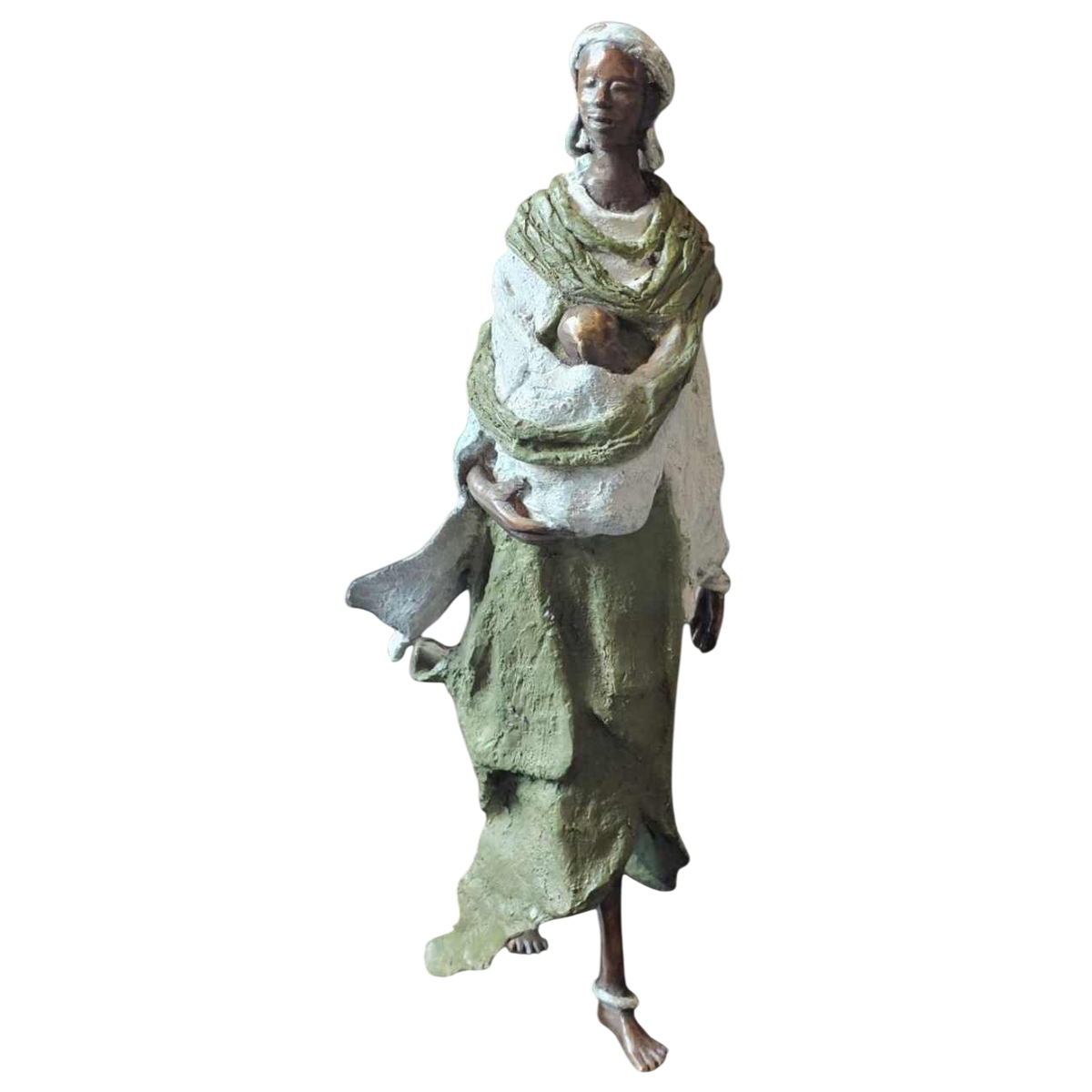 Beautiful patinated bronze maternity. Elegance and sensitivity characterize this magnificent sculpture.